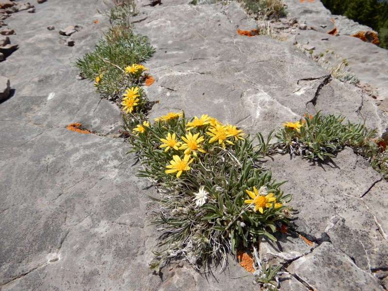 Hymenoxys brandegeei is related to one of the most photogenic alpines of the Rockies, old man-of-the-mountain (Hymenoxys grandiflora). Hymenoxys brandegeei has smaller flowers but offsets size by being perennial as opposed to monocarpic. Both species have been cultivated at Denver Botanic Gardens with surprising ease. With H. brandegeei one does not have to keep a constant stream of seedlings coming since it is not monocarpic.