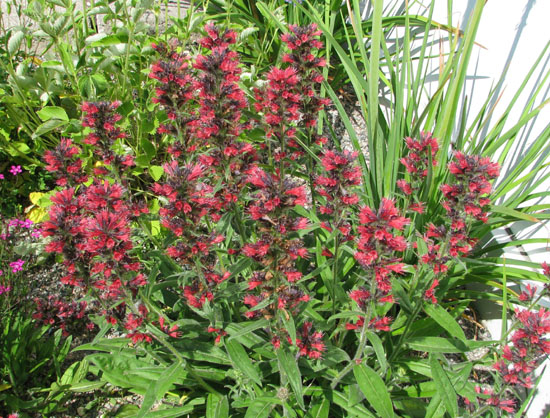 This plant was entered as "Echium amoenum" but is is actually Echium russicum. A small form of Echium russicum has been erroneously marketed under the name E. amoenum 'Red Feathers', E. amoenum is a very different plant and can be seen on Russian plant sites.